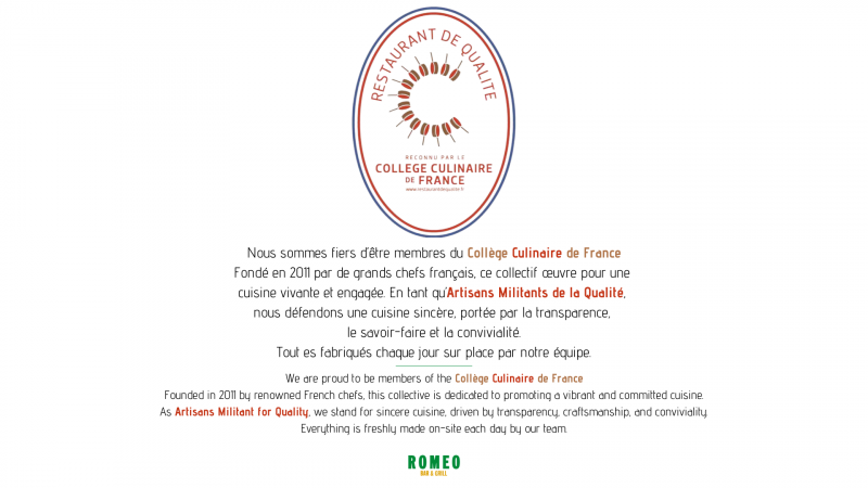 © 2026 Romeo, propulsé par HRV Prod/Restovisio. Tous droits réservés. Mentions légales.